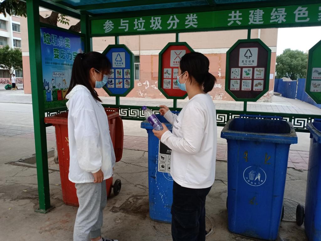 在班级积极招募志愿者,组成“美丽中国 •青春行动”青年志愿者团队,通过在宿舍楼道执勤引导、宣传等方式,提醒学生在生活中注意垃圾分类,并收集身边有关垃圾分类的示例,向大家广泛宣传,增强环保意识。