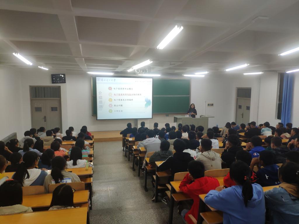 2019年9月15日下午19:30,自动化、机器人工程、电气工程及其自动化、电子信息科学与技术2019年度专业入学教育分别在彭家坪校区集贤楼208、304、308教室顺利举行。新生专业入学教育由自动化系主任王志文教授、电气系主任王晓兰教授、电子系主任黄玲副教授主讲,同时糖果派对