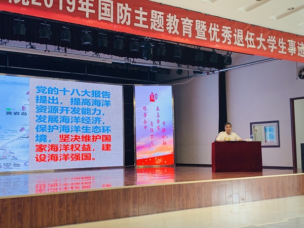 李鹏远副处长做了“踊跃报名参军,维护国家安全,捍卫国家利益”的主题讲座。李处长从我国的周边形势,面对威胁和挑战的思考,公民要强化国防意识等三个方面为大家上了一堂精彩生动的国防教育课。讲座对当前国防形势分析站位全局,分析透彻,道理深入浅出,形式图文并茂,让大家受益扉浅。