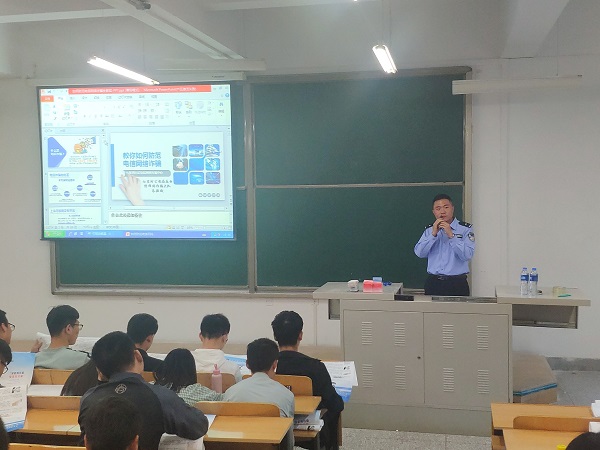 在彭家坪校区4号教学楼205教室,邀请七里河区公安局反电信网络诈骗大队朱毅斌警官,开展兰州理工大学电信诈骗警示巡回讲座。