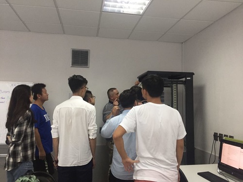 每天早上7:20,整个团队一同出发,前往距离宿舍30 分钟路程的实验室。本次实践学习的课程内容是网络安全,上课的方式和我们国内的不同,没有太多的理论教学,更多的是锻炼我们每个人的动手操作能力。我们中大多数人由于之前对这门课程没有进行过系统的学习,操作过程中总会有各种各样的问题,但安德森教授都会耐心的帮助我们一一解答。课程内容是从做网线和网线接口开始,这次实践操作引发了我们对这门课程的兴趣。后面的学习,每天都会有一项固定的任务,那就是上课前半小时玩一款叫做binary game的游戏,实际上就是2进制游戏,这其实是为我们后面的学习打基础。经过7天时间的学习,我们从构建网络交叉电缆的简单操作,到使用Tera Term建立控制台会话,在第三天的学习中,我们能建立一个简单的网络。每个人单独动手实践,获得的成功感,给了我们后面更深入学习的信心。现在团队中每个人都能进行配置交换机管理地址,查看网络设备mac地址,使用Wireshark查看网络流量,构建交换机和路由器网络这些基本操作。虽然这些可能不是我们专业必备知识,但这次的学习将会在我们以后的工作中起到一定的作用。