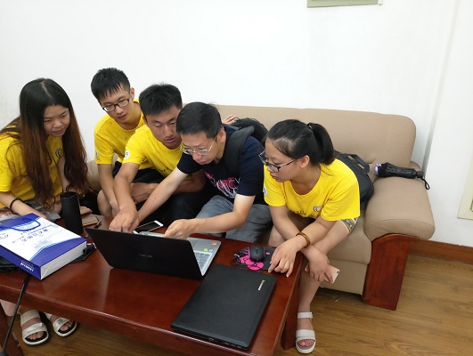 参赛学生与老师一起针对操作实施评估环节的临时调整积极探讨对策