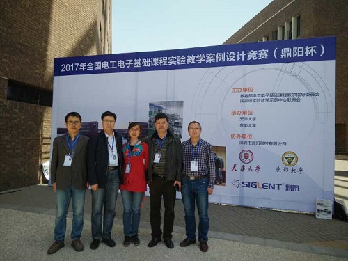 2017年全国电工电子基础课程实验教学案例设计竞赛经过竞赛专家组网上评审,共评选出来自全国20个省(直辖市)份87所高校共计200件优秀作品参加复赛。我校丁守成,黄瑞,杨富龙,王琦和李建海五位老师参加了5月5日至5月8日在天津大学举行的复赛,并取得好成绩。