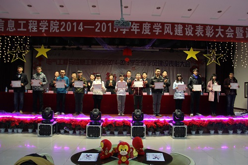 在西校区大学生活动中心隆重召开2014-2015学年度学风建设表彰大会暨迎新晚会。学校党委李贵富书记,党委学工部部长、学生处张思成处长,学生就业指导服务中心李竹梅主任,校团委王正民书记,易班发展中心杨金明常务副主任及糖果派对