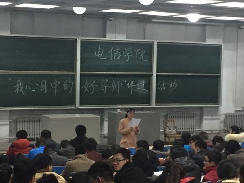 于2015年12月8日在1北501教室开展了“我心目中的好导师”评选活动。