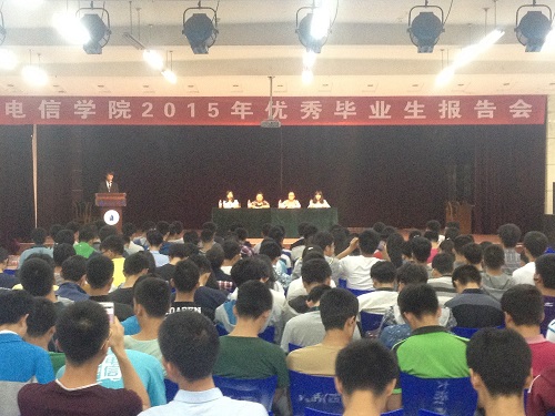 的王雷训等四位2015届优秀毕业生,与大家分享了学习经历、校园生活等方面的经验和历程,四位学姐从学习、生活、考研、就业等四个方面向大家提出了建议,鼓励同学们明确自身目标,提升自身素质,培养“自我学习、自我管理、自我服务、自我发展”的能力,时刻以“尚学明德”为人生座右铭,做好准备,才能迎接更美好的未来。