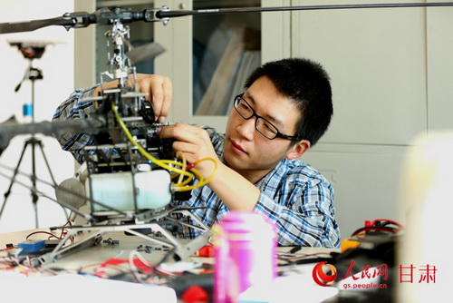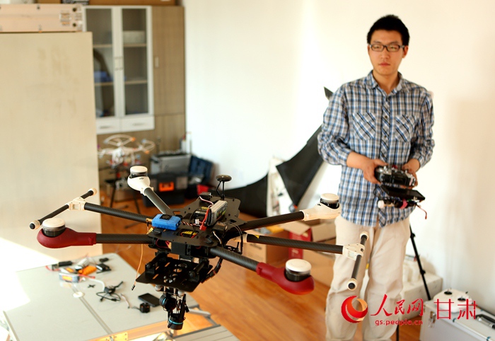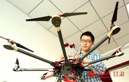 “这架无人机现在是我们的主力机型,它是八旋翼无人机,这两天出了点问题,我正在维修。”正在捣鼓着无人机的杨启帆说。生于1990年的杨启帆是兰州理工大学糖果派对