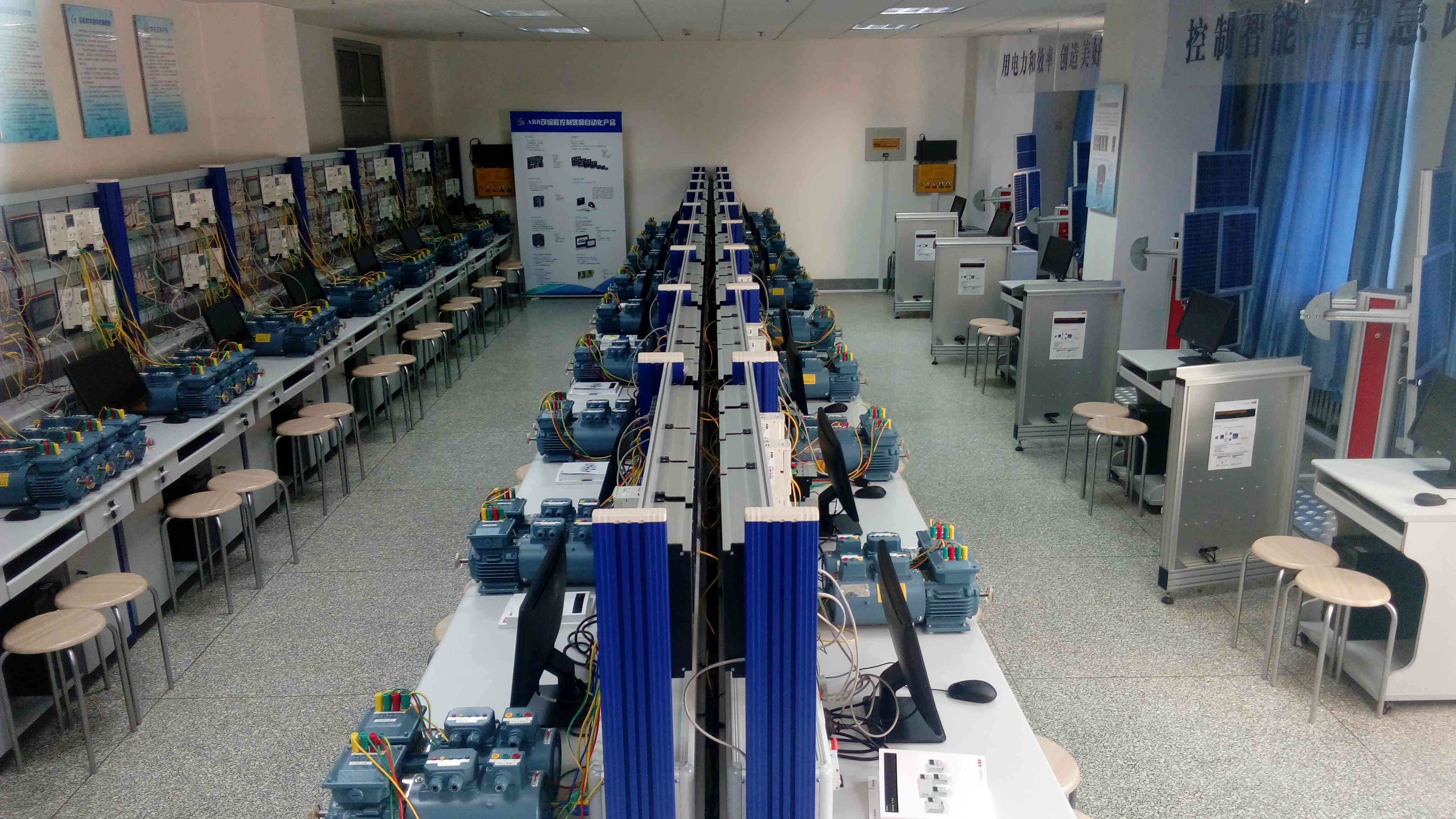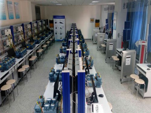 兰州理工大学-ABB自动化实验室总投资达350多万元,实验室占地面积100平方米,可同时容纳40名师生同时进行教学和科研实验。实验室整体系统采用ABB公司最新的AC500 系列可编程控制系统、ACS355微型传动、ABB高效节能变频低压电机、NextMove e100三轴伺服控制器等部件,控制器之间通过工业实时以太网构建系统网络,总线演示台同时支持CS31 Bus、Modbus TCP、PROFIBUS等多种典型现场总线工作模式。变频控制支持就地编程器操作、端子控制及现场总线三种典型的工程现场操作模式。变频电机自带编码器与控制器高速计数通道配合,可以完成基于位置和速度的双闭环调控。三轴伺服控制器装置可以支持伺服电机的转矩模式控制、伺服电机的位置模式控制、2轴伺服电机同步控制、3轴伺服电机同步控制等研究实验。五个太阳能双闭环轨迹跟踪系统装置则参照工程实物模型制作,基于该模型可以进行太阳能发电过程中的相关控制算法研究,涉及工业网络技术基础及应用、现场总线技术、工业网络系统及应用、工业自动化技术、计算机控制技术应用等专业领域。同时,实验室在建设过程中根据兰州理工大学课程设置和师生需要特别选定了当前设计科学的控制对象和工业实验装置,配置了最先进的网络控制系统,将计算机、网络通信、先进控制技术融于一体,充分融合了ABB集成自动化的理念,是ABB集成自动化系统缩影。
