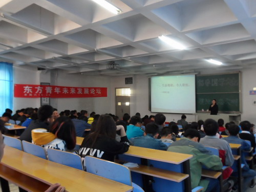 国学会承办的“东方青年未来发展论坛全国巡回演讲大型公益活动”在西校区拉开帷幕,东方青年未来发展论坛康倩老师携青年志愿者一行面向我校大学生做了宣传及讲演活动,旨在引起大家对生态环境与国学文化的足够重视。