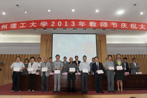 2013年9月9日下午,学校在逸夫科技馆二楼报告厅隆重举行2013年教师节庆祝大会。全体校领导、中层干部、获奖教师代表、近三年新入职教工等300余人参加了会议。会议由党委书记李贵富主持。庆祝大会在庄严的国歌声中开始,邱平副书记宣读了《兰州理工大学关于表彰“十大师德标兵”及“三育人”奖先进个人的决定》,夏天东副校长宣读了有关教学及质量工程建设的表彰奖励决定。随后进行了颁奖仪式。