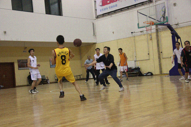 老师和研究生共同进行的篮球联谊比赛。