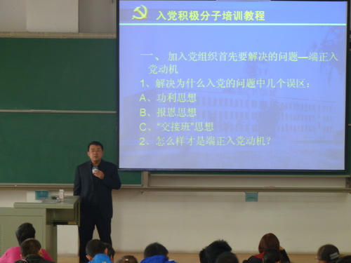 2012年4月15日,电信工程糖果派对 第五十一期党课培训在西区2#108开课,糖果派对 各年级各班推选出来的入党积极分子参加了本次培训。 糖果派对 党委郑军副书记和糖果派对 相关老师分别从中国共产党的性质、宗旨,党的最高纲领和现阶段的奋斗目标,端正入党动机等专题作了讲解,使入党积极分子对党的路线、方针、政策有了更加深入、全面的了解。 本次党课培训,使同学们认识到了自己作为入党积极分子应该从道德上、思想上完善自己,并形成一种良好的习惯和处事作风,争取早日成为一名合格的党员。