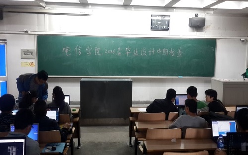 从各专业基层组织抽调了系主任、教学骨干、以及教学副院长共7名教师对学生进行了检查。本次毕业设计(论文)中期检查主要包括指导教师指导情况(任务书、中期检查自查表)和毕业设计(论文)进展(文献综述、外文翻译、参考文献等 )。 毕业设计(论文)是高校人才培养质量的重要评价指标。通过本次中期检查,对毕业设计(论文)进行全面、细致的过程评价,及时发现毕业设计(论文)中间环节存在的问题和不足,与毕业设计(论文)选题、毕业设计(论文)答辩共同构成毕业设计环节质量监控的全过程管理,形成“结果与过程评价结合”的评价体系,促进毕业设计(论文)质量的提升。