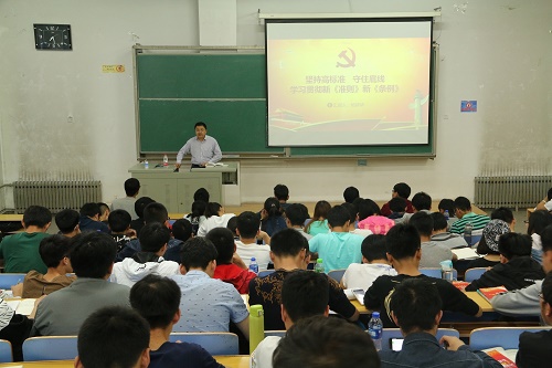 杨新华书记分别从“新《准则》新《条例》的修改背景”、“新《准则》《条例》重点解读”、“新《准则》《条例》的重要意义”及“如何扎实践行贯彻新《准则》《条例》”四个方面向同学们全面阐述了新《准则》《条例》的时代意义和现实价值。重点讲解了新《准则》提出的“四个必须”、“八条规范”、“六大纪律”、“四个自我”。杨新华书记强调,新《准则》重申了党的理想信念宗旨、优良传统作风,紧扣廉洁自律、坚持正面倡导、面向全体党员、强调自律,重在立德,为党员树立了一个看得见、够得着的高标准。《准则》展现了共产党人的高尚道德追求,体现古今中外道德规范从高不从低的共性要求,是我们党执政以来第一部坚持正面倡导、面向全体党员的党内廉洁自律规范。希望各位入党积极分子加入党组织第一步开始,严格遵守党的政治纪律、工作纪律、群众纪律、组织纪律、廉洁纪律、生活纪律;守住“底线”、不越“红线”、不碰“高压线”,用《准则》《条例》约束自己的言行,坚持吃苦在前,享受在后,生活节俭,做人清白。