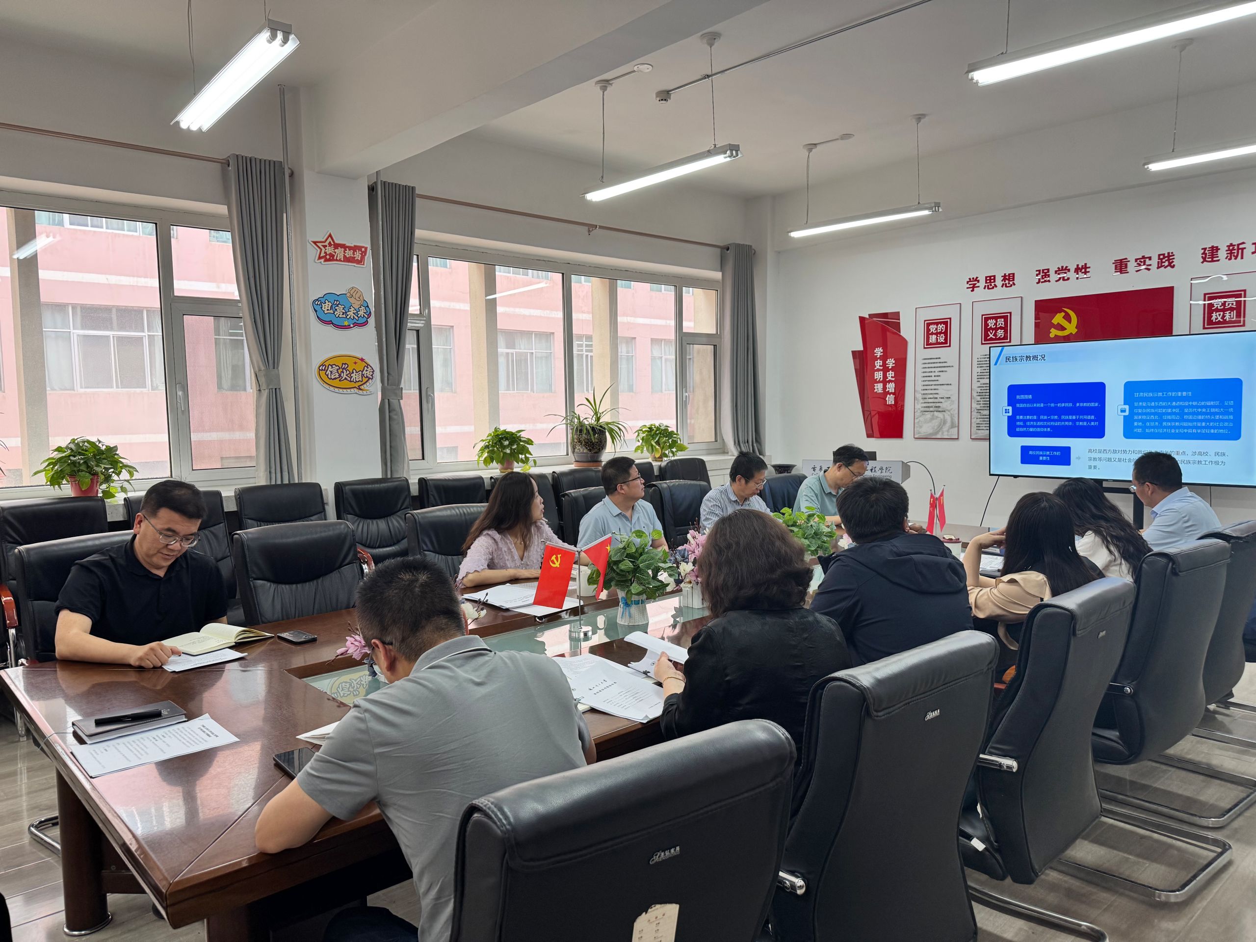领导班子成员、各系部负责人共同学习习近平总书记关于加强和改进民族工作的重要思想,深刻理解铸牢中华民族共同体意识、推进中华民族共同体建设,对维护国家统一和民族团结、增强中华民族凝聚力向心力的重要意义。