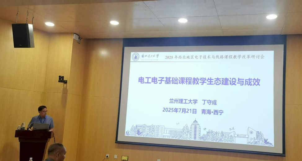 会上,丁守成教授以"电工电子基础课程教学生态建设与成效"为题,系统介绍了我校电工电子教学团队的改革实践。报告从教学团队建设、课程体系优化、实验教学生态构建、自制教学设备研发、学科竞赛与科普教育融合等方面,展示了我校在基础课程教学改革中的创新举措与显著成效,受到与会专家广泛关注。通过会议交流,我校教师深入了解了电子技术课程改革的前沿动态,学习了兄弟院校的先进经验,为后续教学创新提供了新思路。